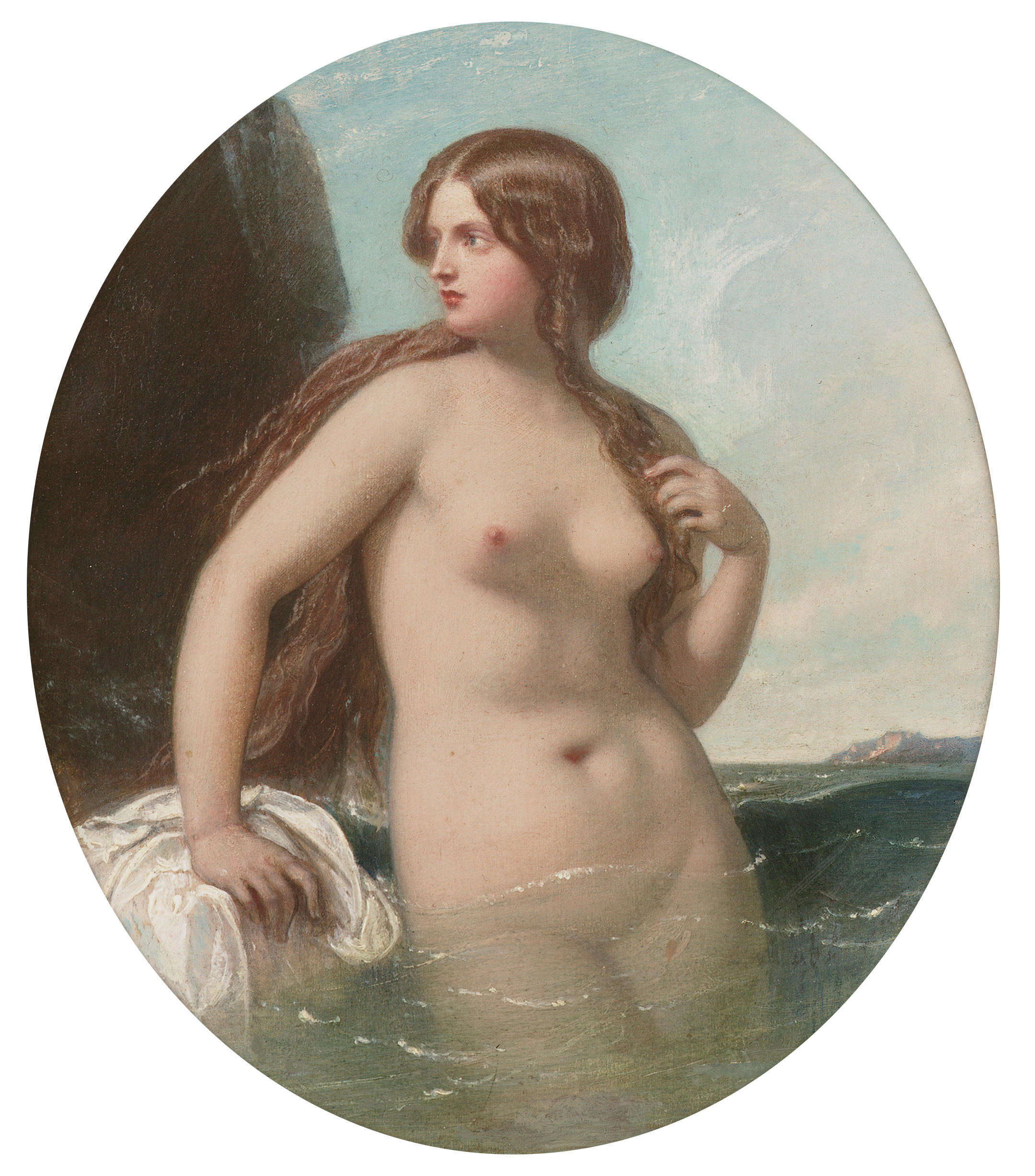 Уильям Эдвард Фрост / William Edward Frost (British, 1810-1877) "Морская нимфа" / "A sea nymph", 1856 г. Дерево, масло / Oil on panel. 15,5 x 14 sm. Частная коллекция. Кликабельно. Полный размер / Full size: https://images1.bonhams.com/image?src=Images/live/2005-02/10/75554-3-3.jpg