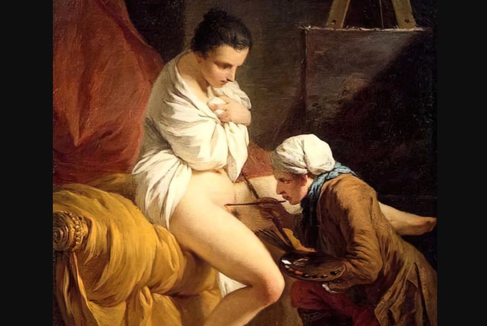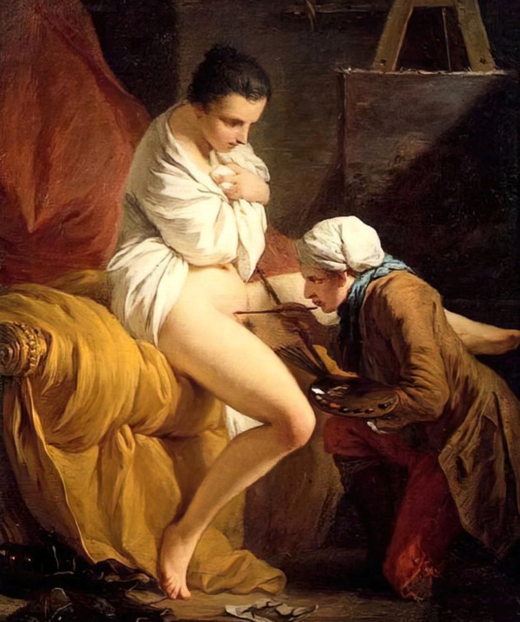 Сюжет басни немного фривольный. Художник, который очень сильно любил свою жену и страдающий сильной ревностью, иногда должен был уезжать по делам. Но расставание с супругой он переносил настолько болезненно, что однажды решился на отчаянный шаг. Поскольку он ценил ее прелести больше собственной жизни, то на определенном месте, как видно из картины, чуть ниже пупка, изобразил осла. Он должен был служить своеобразной печатью. В случае измены жены художник бы узнал об этом по стертому рисунку.