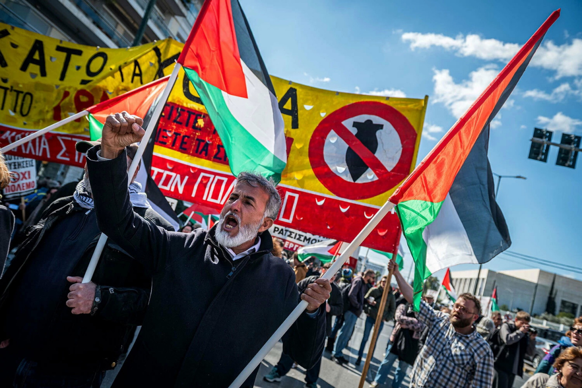 Масштабная антивоенная акция не обошла стороной и Грецию: как и в Италии, солидарные с Ираном, вооружённые флагами исламской республики, собрались в столице у американского посольства, где развернули транспарант «Они сеют хаос на Ближнем Востоке».