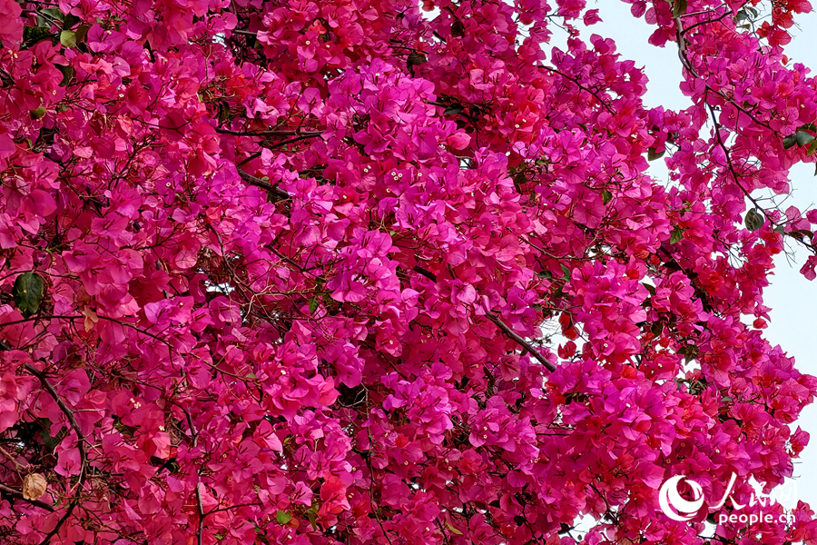 13 апреля, «Жэньминь жибао» онлайн -- В конце весны в старинном квартале Сяндянь города Сямэнь провинции Фуцзянь «городской цветок» — бугенвиллея — пышно расцветает под тёплым ветром. Волны пурпурно-красных цветов разливаются по карнизам и террасам старинных домов, привлекая прохожих, которые останавливаются, чтобы насладиться этим романтическим сочетанием древнего очарования и ярких цветов.-0-